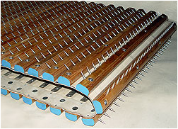 The spiked lattices are manufactured from laminated high density compressed wood for more durability. The lags are fitted with specially designed large headed steel refits for more strengths .heavy duty belts are used to protect the contact between pulleys and refits for longer life of lattices. The carbon steel pins which are used in these lattices are made up with special care to maintain the quality and longer production life and be coated for permanent protection from corrosion.